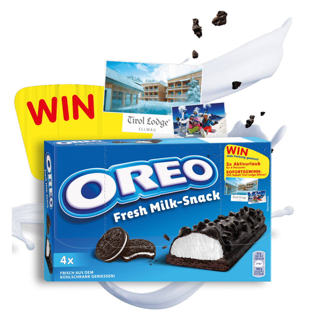 Am besten gleich ab zum Kühlregal, unseren Oreo Fresh Milk-Snack mit knuspriger Cookie Chunks und frischer Milchcreme holen und ganz easy teilnehmen!